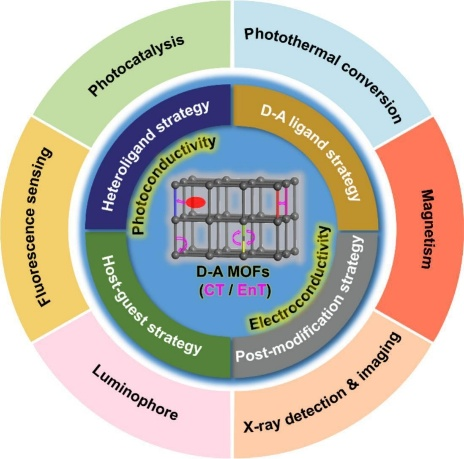 近年来,内置有效电荷/能量转移过程的供体-受体型金属有机框架(D-A MOFs),由于具有独特的光物理和光化学性质,在众多领域展现出了诱人的应用前景。该综述首先系统性地总结了D-A MOFs的合成策略(主客体法、多元配体法、供体-受体配体法和后修饰法)。接着,详细讨论了D-A MOFs的独特优势(光导性和电导性)以及多功能应用(发光材料、荧光传感、光催化、光热转化、磁性材料和X-射线检测与成像)。最后,作者对该领域的发展前景和存在的挑战进行了展望和讨论,为D-A MOFs领域后续的发展提供了有力的指导。