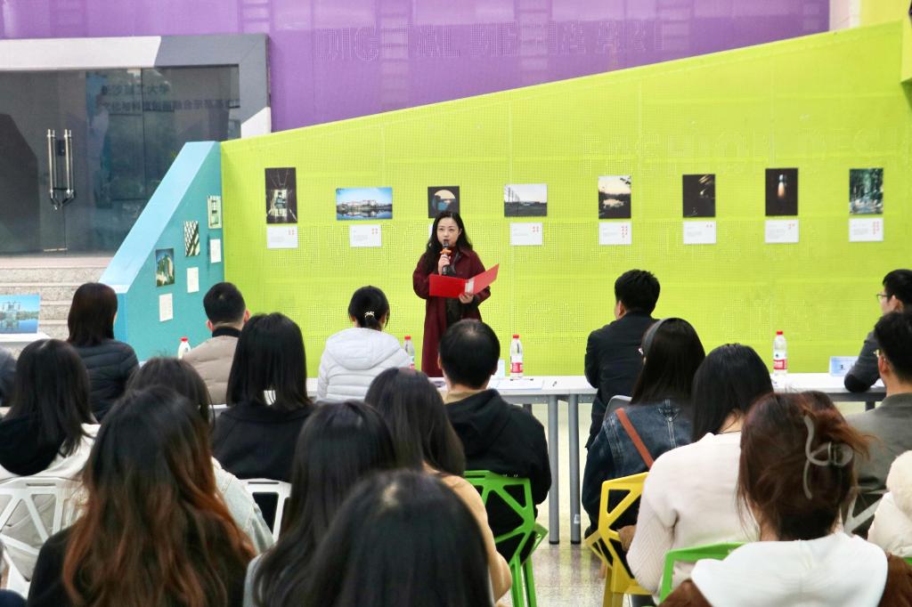 12月2日下午,云塘校区建筑艺术楼一楼门厅内,35 件入围作品静静陈列,光影交错间诉说着长理故事。决赛现场庄重而热烈,研究生院副院长、研工部部长闾兰老师亲临现场并致辞。