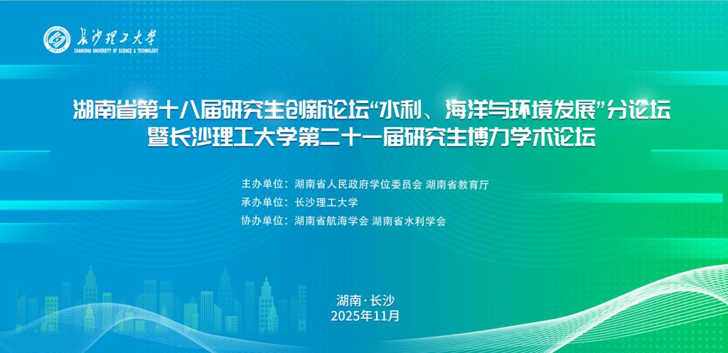 由湖南省人民政府学位委员会、湖南省教育厅主办,承办,湖南省航海学会、湖南省水运学会协办的湖南省第十八届研究生创新论坛“水利、海洋与环境发展”分论坛暨第二十一届研究生博力学术论坛将于2025年11月1日-11月2日在云塘校区举行。