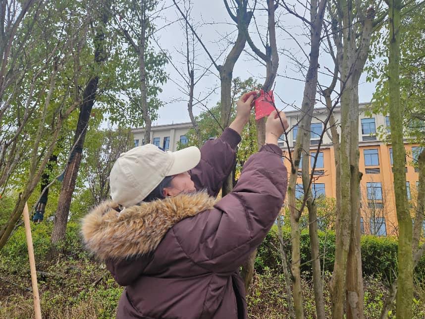活动现场,党员们跟随园林技术人员,系统学习本次认养的樟树、紫薇等苗木的养护知识与实操技能,为后续规范开展护绿作业做好充分准备。随后,大家分工协作,手持锄头、修枝剪、垃圾袋等工具,严格按照专业规范完成松土、修枝、浇水全流程养护,细致清理树盘周边杂草;养护完毕后,为每株苗木挂上专属认养牌,并写下初心寄语,以长期义务护绿的承诺,践行雷锋无私奉献的服务精神。同时,党员们对公园绿地、步道周边的垃圾杂物、枯枝落叶开展全面捡拾与分类清理,用实打实的劳动美化市民日常休闲的公共空间,践行雷锋为人民群众服务的实干精神。