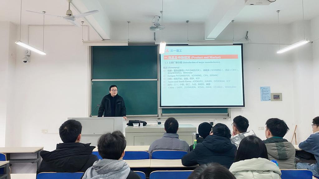 2020年12月16日14:00,三一集团与联培国际班第七次培训课程在工一B212举行。本次课程由三一集团泵送事业部泵送公司研究院研发所长黄运明领导主讲,主题为“泵车总体设计培训”,国际班十八名学员参与了此次培训。