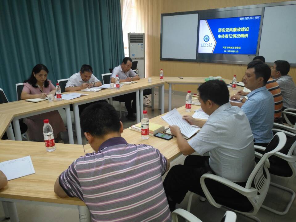 9月23日下午,学校纪委书记胡永乐来我院调研党风廉政建设工作,学校纪委副书记、纪检监察处处长胡秀英,正处级纪检员陈光明陪同调研,学院班子成员参加了调研。