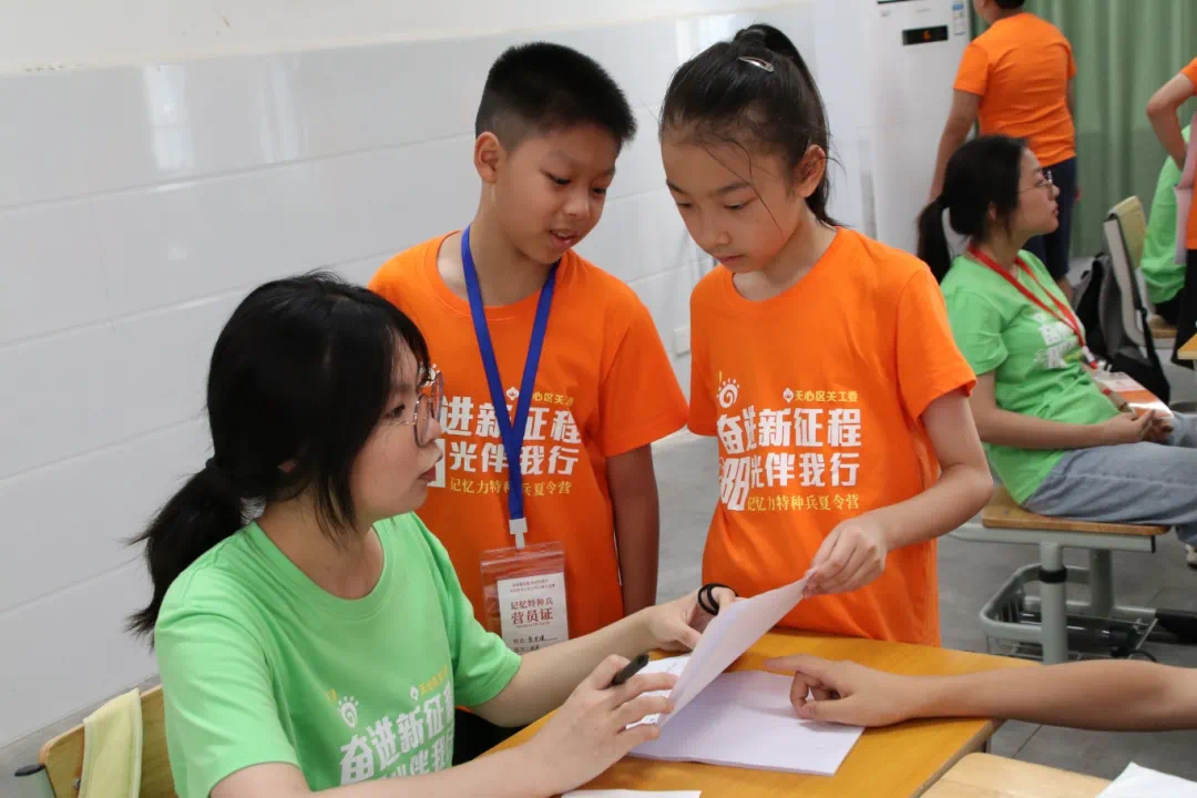 下午,“最强大脑”亚洲记忆女王罗兴钊为学员们带来团队活动:演说力训练。以团队的形式让学员与志愿者们一起合作英语演说,志愿者们一对一教孩子们英语演讲时的手势,帮助他们纠正发音。学员们沉浸在这独具匠心的课堂里,迫不及待的向志愿者们展示刚刚学习的英文演讲,团队活动让他们的心更加紧密的联系在一起。