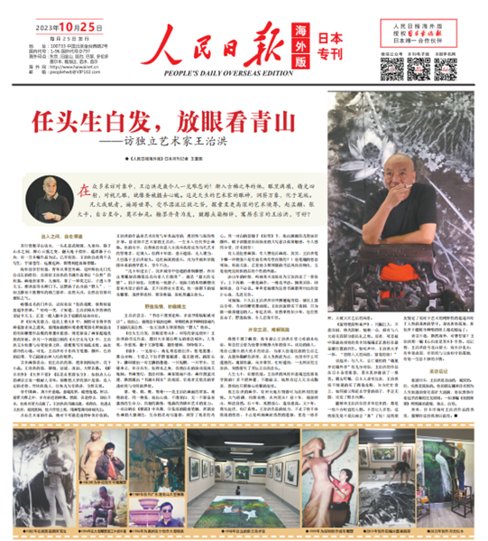 2023年10月25日,人民日报海外版日本专刊以“任头生白发,放眼看青山——访独立艺术家王治洪”为题,报道了我校83级工艺美术专业校友、中国艺术家王治洪先生。