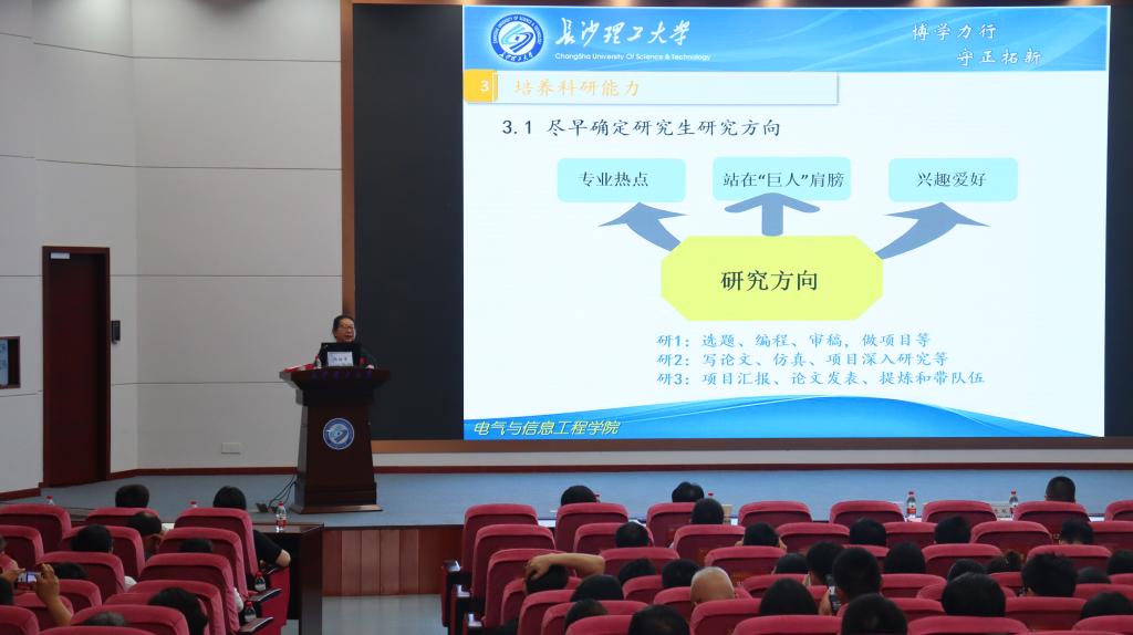 5月23日上午,学校在图书馆报告厅召开研究生导师专题培训会议。中南大学研究生院学位办主任湛利华教授、电气与信息工程学院周任军教授作专题报告。研究生院院长何忠明、各培养学院分管研究生教育工作负责人及导师代表300余人参加。会议由研究院副院长、研究生工作部部长闾兰主持。