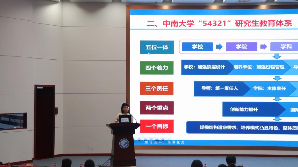湛利华作题为《中南大学研究生教育及学位论文质量保障体系建设》的主题报告。她介绍了中南大学“54321”研究生教育体系情况,着重讲述了全过程学位论文质量保障体系建设的十大举措及成效,为学校的研究生教育发展及如何提高学位论文质量提供了参考依据。